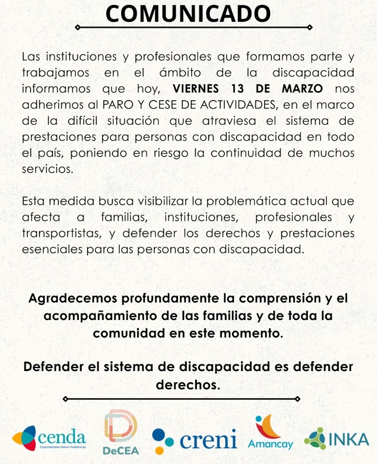 Asimismo, concluyeron con un mensaje contundente: “Defender el sistema de discapacidad es defender derechos.”