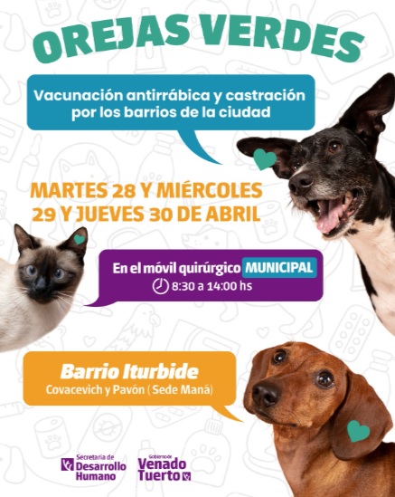 "Orejas Verdes" llega a un nuevo barrio de Venado Tuerto con vacunación antirrábica y castración gratuita