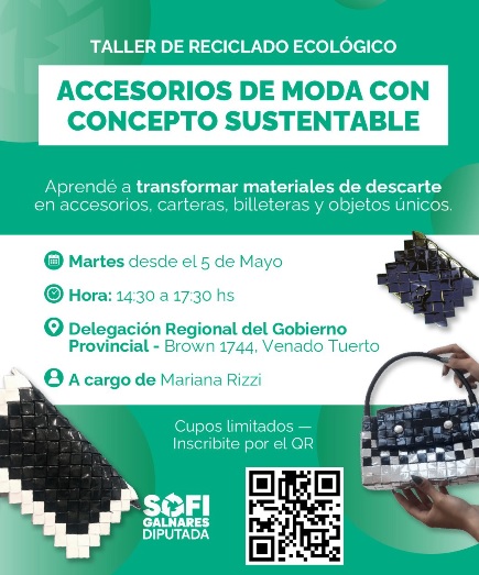 Accesorios de moda con materiales reciclados, el taller que impulsa la Diputada Galnares en Venado Tuerto